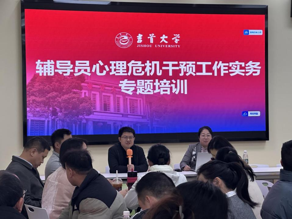 本网讯(阳志尊 李荣)为进一步推动教育部“立德树人工程”和“时代新人铸魂工程”部署要求落地生根,全面提升学校辅导员在心理健康教育方面的工作能力,规范开展学生心理危机干预工作。3月5日至17日,我校结合湖南省高校专职辅导员心理健康教育专题培训,采取线上线下相结合的培训方式,举办吉首大学辅导员心理危机干预工作实务专题系列培训活动。