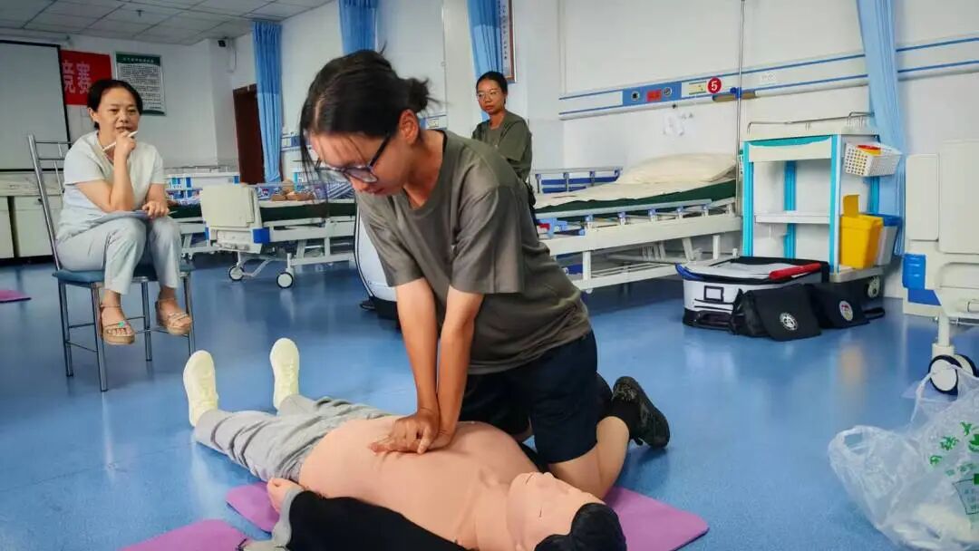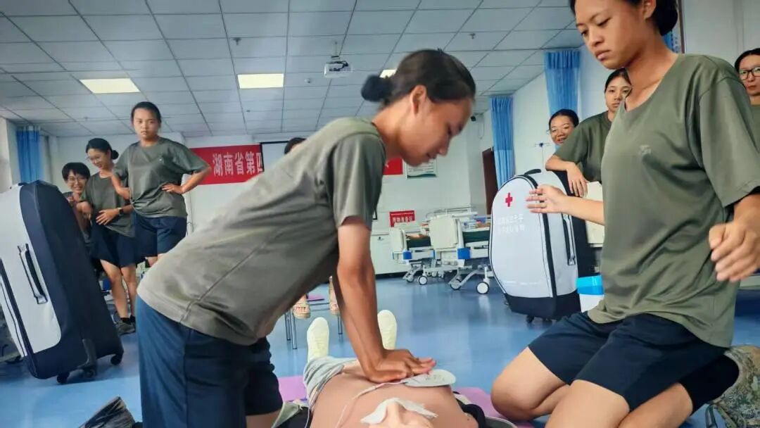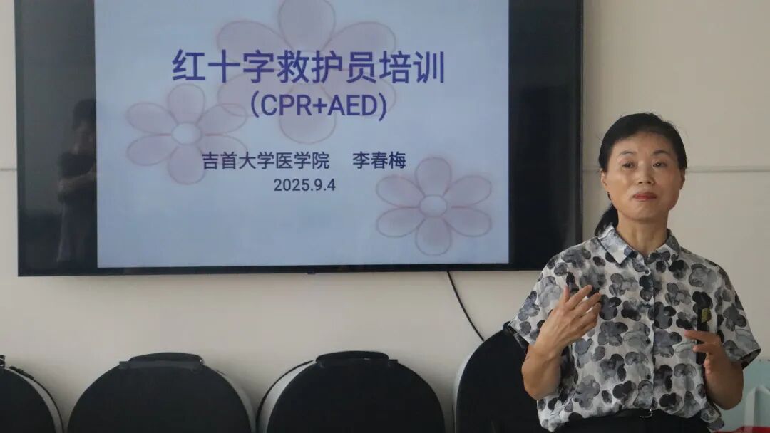 为深入贯彻落实习近平总书记关于健康中国建设的重要论述精神,切实提升吉首大学民兵预备大队军训教练员的应急救护能力,9月4日,吉首大学党委武装部牵头,邀请吉首大学医学院张惠娟老师、祖力甫哈尔·亚科甫老师、熊若伊老师及商学院苟才益老师共同参与,分别在砂子坳校区商学院教工之家与大田湾校区实训大楼护理实验室,开展以心肺复苏(CPR)和自动体外除颤仪(AED)为重点的应急救护培训活动。