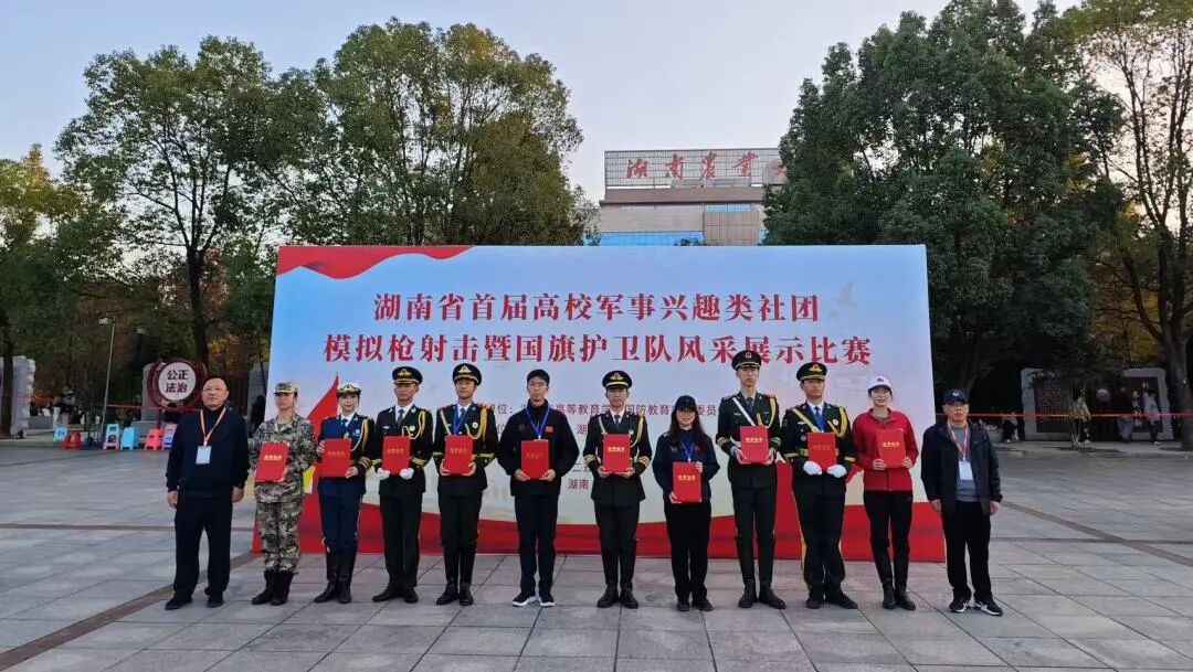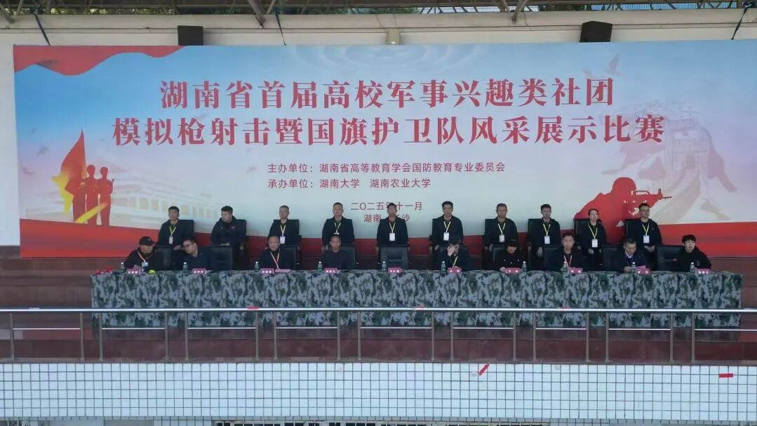 为弘扬爱国主义精神、强化高校国防教育,湖南省首届高校军事兴趣类社团模拟射击暨国旗护卫队风采展示比赛在在湖南农业大学正式拉开帷幕。其中,模拟射击比赛有60余所高校参与,国旗护卫队风采展示比赛吸引50余所高校参赛。