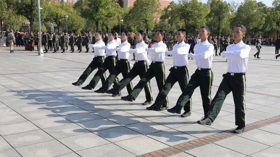 队列展示阶段,参赛队员以昂扬姿态完成多科目展演。队员们基础动作利落规范,停止间转法同步精准,齐步、正步行进时摆臂踢腿整齐划一,队列始终规整有序。全流程中,队员们严守赛事标准、配合默契,既彰显过硬纪律作风与专业素养,更展现新时代大学生的蓬勃精神风貌。