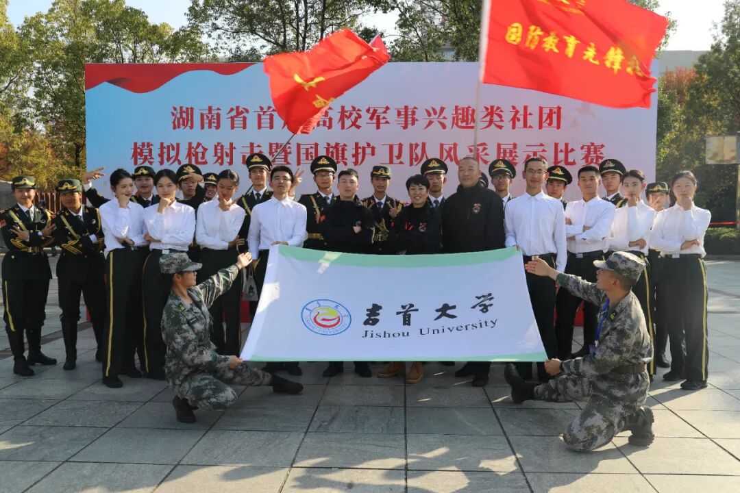 吉首大学高度重视此次赛事,组建4人射击队(队员含射击爱好者、退伍军人)及22人国旗护卫队,如期参赛并与全省高校学子交流互鉴,展现新时代大学生过硬的军事素养与昂扬精神风貌。