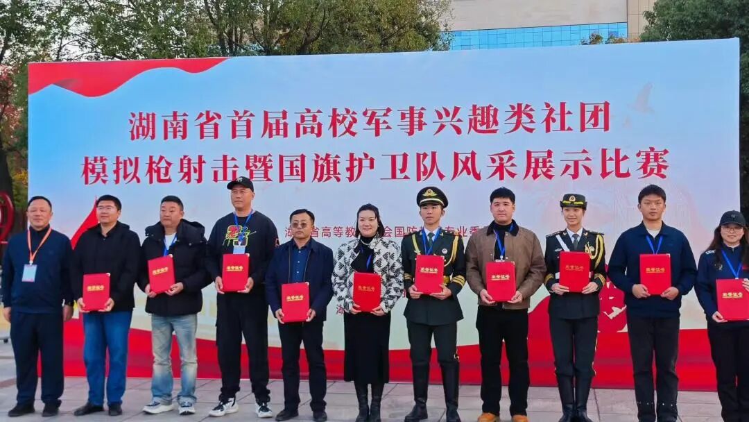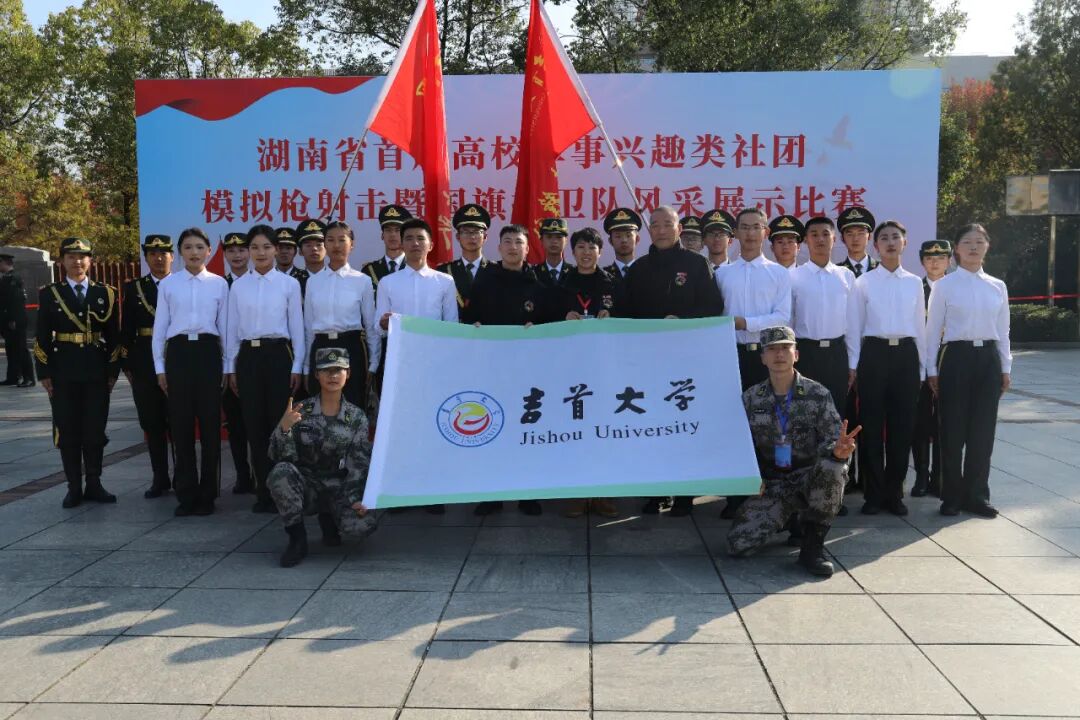 在湖南省首届高校军事兴趣类社团模拟射击暨国旗护卫队风采展示比赛中,吉首大学获得荣誉如下: