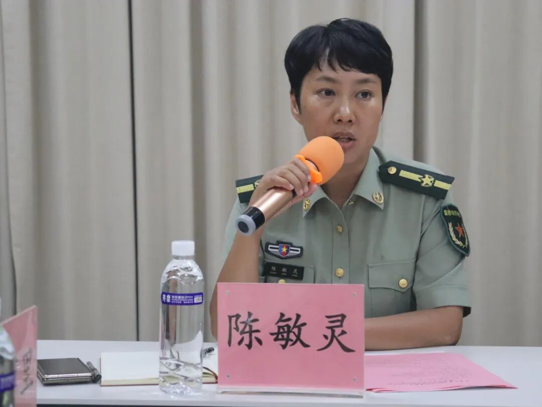 (图为学工部、武装部副部长陈敏灵主持会议)