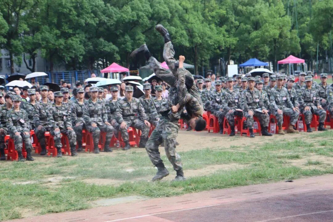 星火汇聚燃战意,众志凝锋淬荣光!吉首大学民兵预备大队带来捕俘拳、匕首操、警棍盾牌、应急棍、一招制敌和战术表演,通过此次表演来展现队员们一年的训练成果和战斗精神。