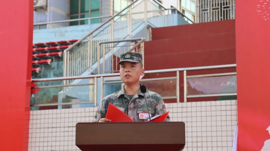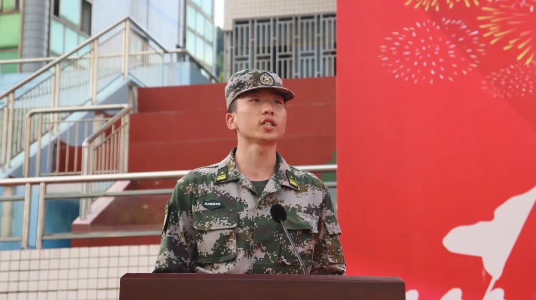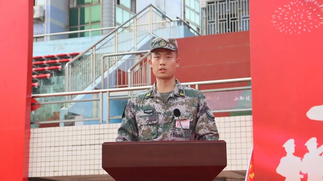 民兵预备大队第四届大队长数学与统计学院李华发言。他回顾三年大队经历,在这里更好的融入大学生活、实现服务师生梦想。他从政治信念、工作能力、个人价值、战友情谊四方面谈收获,感谢学校培养,望大队再创辉煌。