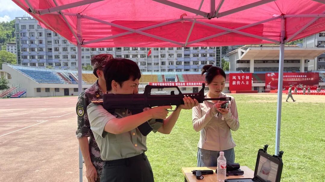 为增强学生国防意识,激发参军热情,会后,开展了军事技能体验活动,吸引了众多学生积极参与,现场气氛热烈。