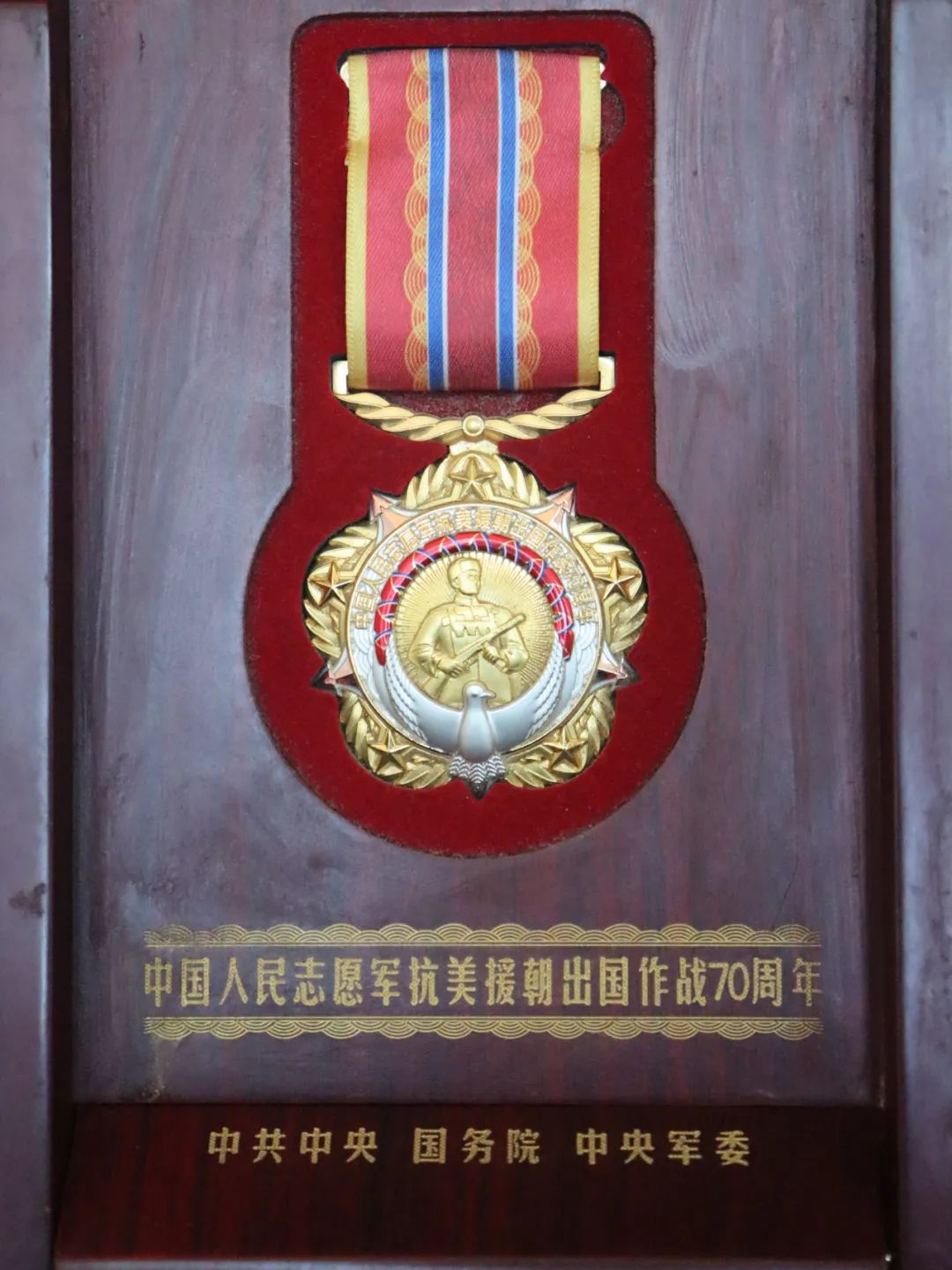 刘启林战士荣获 “中国人民志愿军抗美援朝出国作战70周年” 纪念章,这枚由中共中央、国务院、中央军委颁发的纪念章是对英雄功绩的崇高肯定,承载着厚重历史与无上荣光。