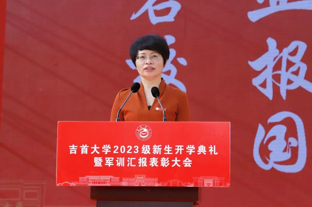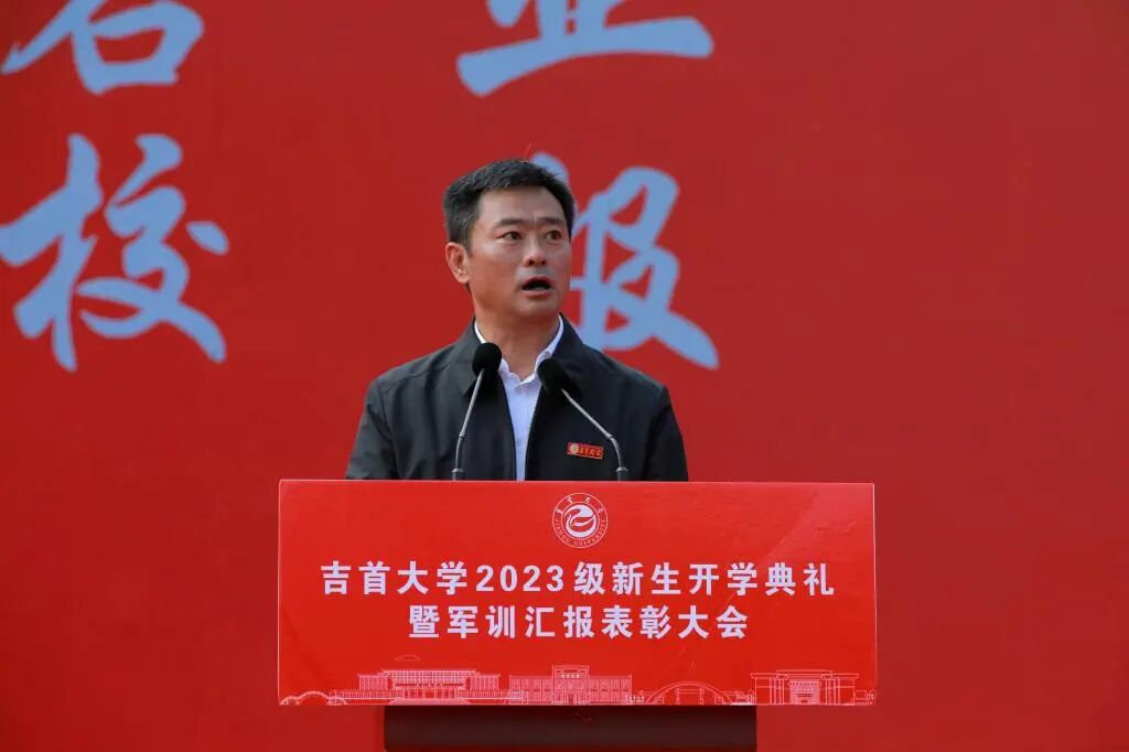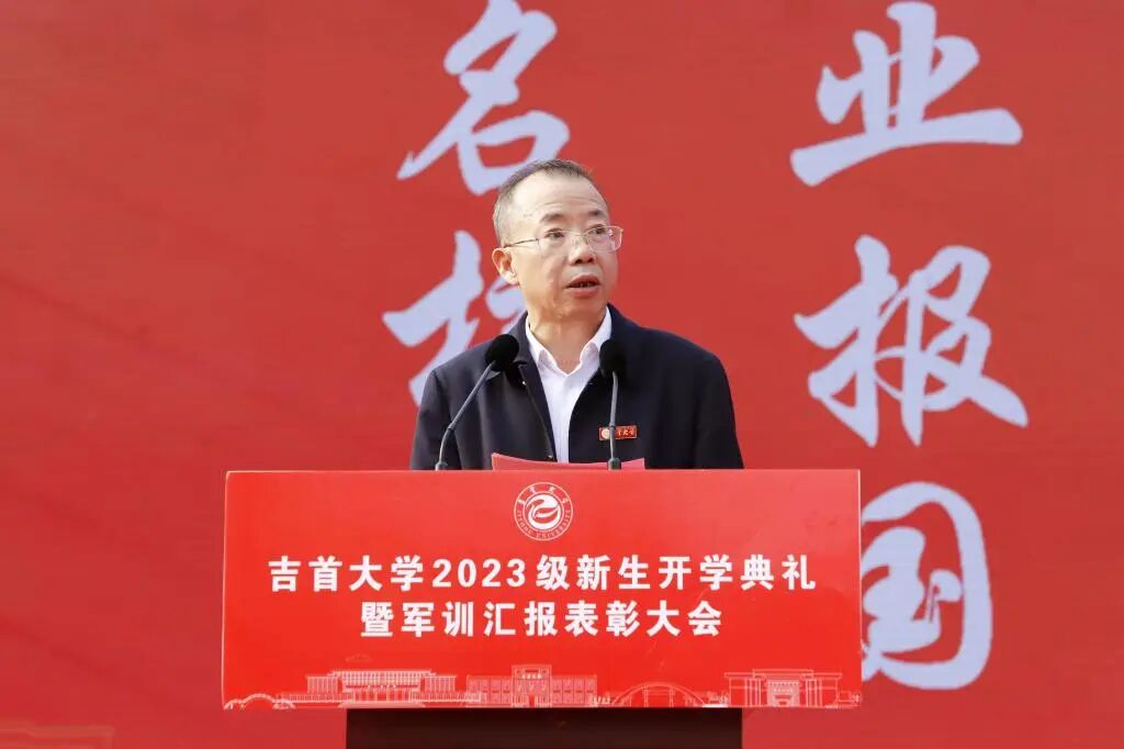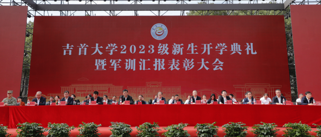 我校全体在校校领导,吉首校区各学院院长、职能部门负责人、各学院新生辅导员,以及2023级全体本硕博新生参加开学典礼。吉首军分区战备建设处处长任庆瑞上校作为特邀嘉宾出席典礼。本次开学典礼由校党委书记廖志坤主持。