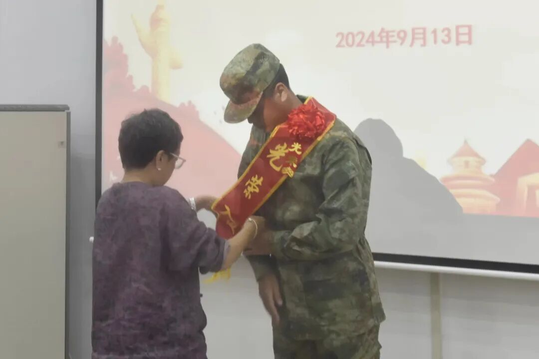 学院领导们亲切地为学生们佩戴绶带,颁发纪念品,每一份礼物都承载着深深期许与祝福,现场洋溢着温馨与鼓舞的氛围。他们深情寄语,望学子们在军旅生涯中锤炼意志,增长才干,以赤诚之心捍卫和平,书写青春华章。