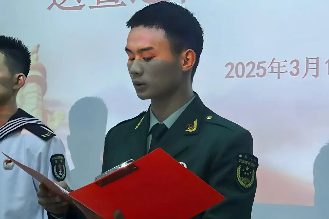 入伍新兵刘云龙说:很荣幸以新兵代表的身份发言。怀揣着对军旅的向往,我们即将开启征程,穿上军装,也担起了责任。军旅充满挑战,可我们毫不退缩。军队是磨炼意志的熔炉,我们会直面训练的艰苦、任务的艰难,用汗水铸就钢铁意志。请祖国和家人放心,我们定会牢记使命,刻苦训练,不负期望,在军营中绽放青春、报效祖国!