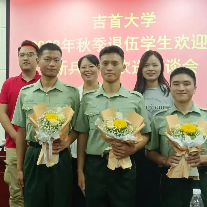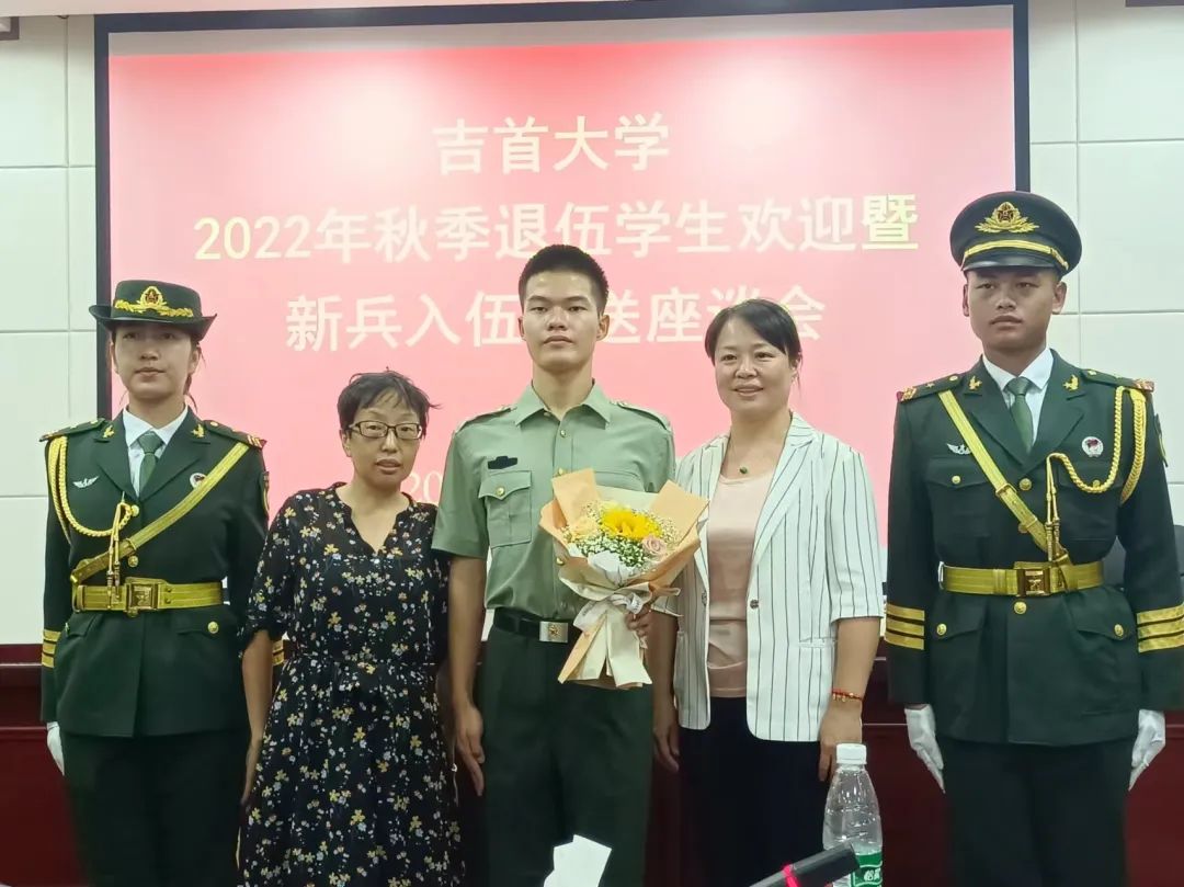 对新入伍的学生,王艳副校长赠送了三段话:“首先是表达祝贺,你们是经过了层层筛选,最终光荣入伍,证明你们是非常优秀且经受得住考验的;其次是表示敬佩,你们坚定理想、追求理想,这值得大家学习;最后是祝福你们,希望你们在部队里保持身体健康、继续发扬吉首大学‘艰苦奋斗’的精神,也祝你们在部队的生活一帆风顺。”