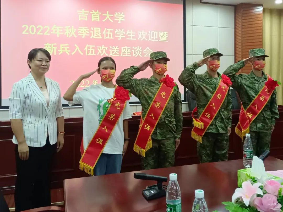 9月15日19:30,吉首大学2022年秋季退伍学生欢迎暨新兵入伍欢送座谈会在吉首大学砂子坳校区齐鲁大楼国际会议厅成功举行。