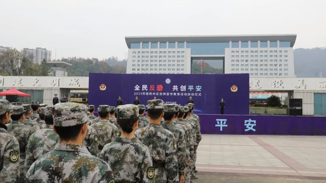 为深入学习贯彻习近平总书记关于反恐宣传教育工作的重要指示精神,落实《反恐怖主义法》及湖南省实施办法相关要求,推进反恐怖宣传教育进校园、进企业、进单位、进社区、进家庭走深走实,积极引导社会各界、广大人民群众参与反恐怖工作。湘西州于2025年12月18日上午9时在吉首市世纪广场开展“全民反恐,共创平安”反恐怖宣传教育系列活动启动仪式。吉首大学组织120名吉首大学民兵预备大队成员共同参加此次活动。