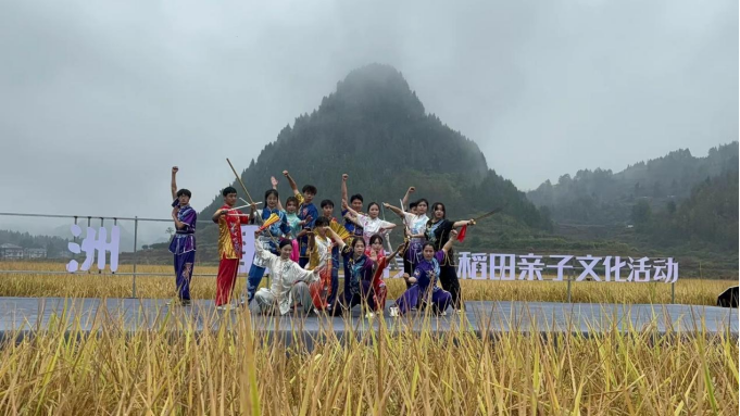 田间地头生产忙、农副特产遍地香。丰收为节、文化为媒。稻田作舞台,百姓做观众。学生们开展了丰收歌、采茶舞、摆手舞、民族健身操等自编自演的文化活动,结合课堂所学将民族传统体育文化融入乡村振兴文化活动中,展示了我校武术与民族传统体育国家级一流本科专业建设的成效,开辟了文化融入乡村振兴的第二课堂。公益助农吸引大批外地游客来现场观赏体验。